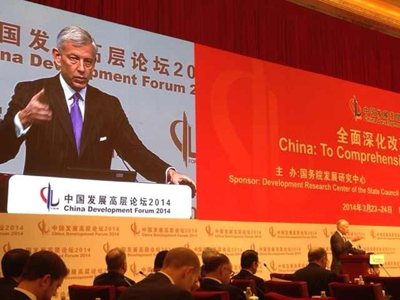 “中國發(fā)展高層論壇2014”于3月22日-24日在釣魚臺舉行。麥肯錫董事長鮑達民發(fā)表演講時表示,中國的產(chǎn)能過?赡軙屵@些行業(yè)30%就業(yè)者失業(yè)。中國政府有機會減少考核體系中GDP指標的比重。