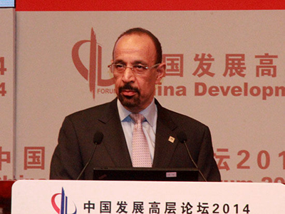 “中國發(fā)展高層論壇2014”于3月22日-24日在釣魚臺(tái)舉行。上圖為沙特阿拉伯石油公司總裁、首席執(zhí)行官哈立德·法利赫在《對(duì)話會(huì)二:探索低碳發(fā)展之路》上做主題發(fā)言。