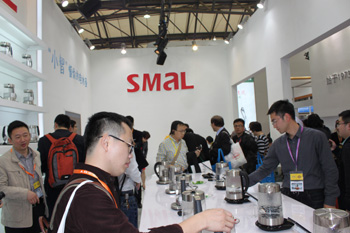 智能化不僅僅是體現(xiàn)在大家電產(chǎn)品上。記者在展會上發(fā)現(xiàn)了一款號稱中國國內(nèi)市場首款具備移動互聯(lián)智能控制技術(shù)的電水壺。這款名叫西摩“小智”的智能電水壺,內(nèi)置了Broadcom的Wifi芯片,采用上海慶科的Easy-link技術(shù),并且無論是IOS系統(tǒng)還是Android系統(tǒng)均有對應(yīng)的APP下載,可以輕松實現(xiàn)多個移動端通過網(wǎng)絡(luò)從任何地點對其進行控制,也可以一臺手機控制家里的多個水壺。