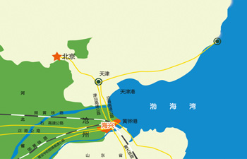 從地圖上看,海興就像漳衛(wèi)新河入海處結(jié)出的一枚神奇的寶葫蘆。它東臨渤海,南接齊魯,北望京津,與黃驊大港相接,總面積為960平方公里,轄區(qū)內(nèi)11.7平方公里納入黃驊港開發(fā)區(qū),連接港口與腹地的正港公路、縱貫渤海之濱的海防公路、連接山東與京津的黃辛公路在境內(nèi)交匯。