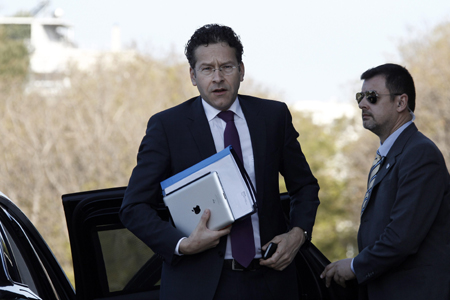 歐元集團主席戴塞爾布盧姆(左)4月1日在雅典表示,希臘將在4月底之前獲得金額為63億歐元的新一輪救助資金。 正在雅典出席歐元區(qū)財長非正式會議的戴塞爾布盧姆稱,這筆救助資金將幫助希臘應付即將于5月到期的國家債務。另外兩筆總額大約10億歐元的救助資金可能在6月和7月進行發(fā)放,但是否按時執(zhí)行要依希臘進行的改革進程而定。