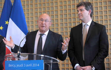 根據(jù)剛剛被任命的新總理瓦爾斯的建議,法國總統(tǒng)奧朗德公布了新一屆內(nèi)閣成員名單。奧朗德表示,期待瓦爾斯領(lǐng)導(dǎo)的“戰(zhàn)斗政府”能開啟“一個(gè)新階段”。分析人士認(rèn)為,如果要降低赤字,控制債務(wù),降低失業(yè)率,必須對法國當(dāng)前的政治、經(jīng)濟(jì)和社會體制進(jìn)行深入改革,對法國新內(nèi)閣來說,經(jīng)濟(jì)挑戰(zhàn)依然嚴(yán)峻。圖為新任財(cái)政部長薩平(左)和經(jīng)濟(jì)部長蒙特伯格(右)3日出席交接儀式。