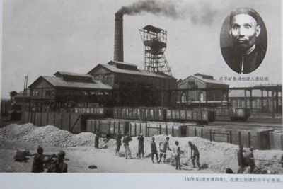 1881年建成的開(kāi)平礦務(wù)局。右上小圖為開(kāi)平礦務(wù)局創(chuàng)建人唐廷樞
