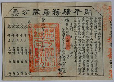 開(kāi)平礦務(wù)局發(fā)行的股票