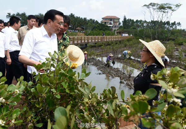 李克強(qiáng)在海南紅樹林保護(hù)區(qū)考察生態(tài)環(huán)保。了解到這里的紅樹林曾遭嚴(yán)重破壞,現(xiàn)在通過加大保護(hù)正在恢復(fù),并吸引了大批游客來此旅游。李克強(qiáng)說,環(huán)保也是生產(chǎn)力。這里雖是紅樹林,卻是綠色的,人與自然和諧相處,生態(tài)旅游帶動(dòng)了當(dāng)?shù)亟?jīng)濟(jì)的健康發(fā)展。
