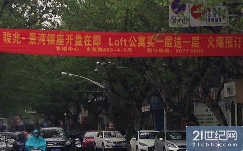 據(jù)悉,在12日當(dāng)天,還有慕容城、景灣銀座等多個(gè)樓盤項(xiàng)目也在進(jìn)行搶籌和開(kāi)盤。在海寧大街上,到處都是房產(chǎn)公司的促銷廣告,開(kāi)元名都拉起了橫幅“存2000抵80000”,景灣銀座則打出“LOFT公寓買一層送一層”的標(biāo)語(yǔ)。