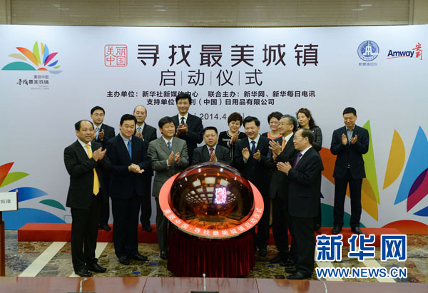 4月23日,國務院副秘書長王仲偉(前排中),新華社黨組成員、副總編輯慎海雄(前排右三),新華社副秘書長姚光(前排左三),安利(中國)日用品有限公司總裁黃德蔭(前排右二)等一起啟動“美麗中國·尋找最美城鎮(zhèn)”大型新媒體報道活動。當日,新華社“美麗中國·尋找最美城鎮(zhèn)”大型新媒體報道活動在北京啟動。活動將通過實地調研采訪與主題論壇相結合的方式,展示我國近年來城鎮(zhèn)化進程中的最美風景線。這項大型新媒體報道活動,由新華社新媒體中心發(fā)起并主辦,新華網、新華每日電訊聯(lián)合主辦,安利(中國)日用品有限公司全程支持;顒右劳行氯A社全媒體優(yōu)勢,借助網絡、微博、微信、客戶端等新媒體傳播方式,通過開展“美麗中國·隨手拍家鄉(xiāng)”等線上主題活動,邀請全國網民共同參與尋找、發(fā)現(xiàn)中國城鎮(zhèn)之美。新華社發(fā)(李方宇