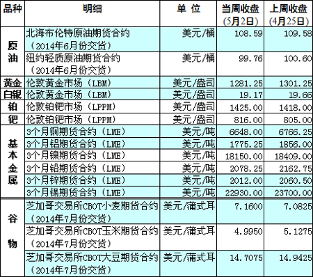 國際大宗商品期貨價格明細(xì)表[2014-5-5]