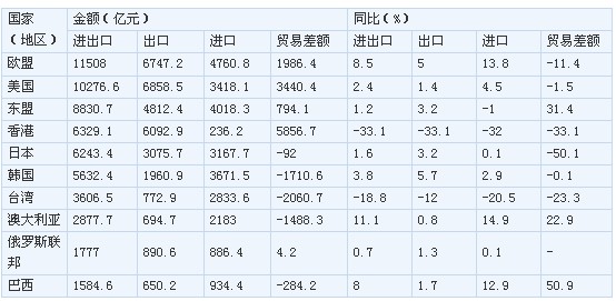 ,比去年同期(下同)下降3.1%。其中,出口4.16萬(wàn)億元,下降4.8%;進(jìn)口3.94萬(wàn)億元,下降1.2%;貿(mào)易順差2154億元,減少42.9%。