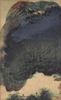 《秋山夕照》,1968年,張大千 |