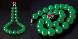 在4月7日結(jié)束的蘇富比香港春拍“瑰麗珠寶及翡翠首飾”專場(chǎng),來(lái)自傳奇名媛芭芭拉·赫頓舊藏之天然翡翠珠項(xiàng)鏈經(jīng)七名投標(biāo)者歷時(shí)20分鐘激烈競(jìng)投后,以2.14億港元天價(jià)成交,刷新翡翠首飾以及卡地亞首飾的世界拍賣紀(jì)錄。這個(gè)天價(jià)神話引起了玉石收藏圈子的廣泛關(guān)注,一些關(guān)于翡翠行情的消息也不脛而走。雖然翡翠在未來(lái)具有較大的升值空間,但是藏家在收藏翡翠時(shí)切忌盲目,并不是所有的翡翠都具有升值潛力。目前市面上需求最旺的,零售價(jià)為1000到5000元的翡翠制品多為流通飾品,只能消費(fèi)而不具備投資價(jià)值。真正有投資價(jià)值的是那些收藏級(jí)翡翠制品。比如此串翡翠珠項(xiàng)鏈,其上27顆翡翠珠子顆顆正綠碩大,直徑為15.40毫米至19.20毫米,洋溢著皇家氣派,乃清宮遺物,世間罕見。流傳有序,曾經(jīng)擁有過(guò)它的人都是世界名流也是其天價(jià)的原因之一。翡翠收藏愛好者需要明白的是,藝術(shù)品投資是一項(xiàng)長(zhǎng)線投資,作為收藏者首先要懂得欣賞。如果只抱著投機(jī)的態(tài)度入市,那是一件很危險(xiǎn)的事。