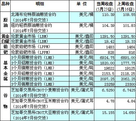國(guó)際大宗商品期貨價(jià)格明細(xì)表[2014-5-19]