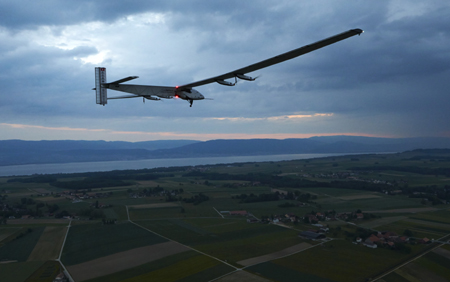 6月2日,目前全球最大的太陽(yáng)能飛機(jī)“太陽(yáng)驅(qū)動(dòng)”2號(hào)在瑞士西部城市帕耶訥成功首飛。明年3月,兩名瑞士探險(xiǎn)家將駕駛“太陽(yáng)驅(qū)動(dòng)”2號(hào)從海灣地區(qū)出發(fā),經(jīng)阿拉伯海,進(jìn)入印度、緬甸、中國(guó),然后跨越太平洋前往美國(guó),再飛往南歐和北非,最終回到起點(diǎn)。