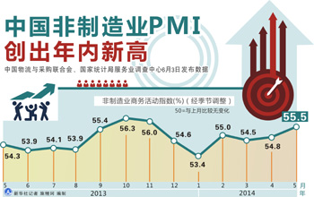 中國物流與采購聯(lián)合會、國家統(tǒng)計局服務(wù)業(yè)調(diào)查中心3日發(fā)布數(shù)據(jù)顯示,5月非制造業(yè)商務(wù)活動指數(shù)(官方非制造業(yè)PMI)達到55.5%,環(huán)比上升0.7個百分點,創(chuàng)出年內(nèi)新高。5月匯豐中國制造業(yè)采購經(jīng)理人指數(shù)(匯豐制造業(yè)PMI)終值同日發(fā)布,達到49.4%,明顯高于上月終值48.1%,創(chuàng)4個月新高。