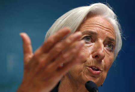 圖為國際貨幣基金組織總裁拉加德當日在美國華盛頓舉行的新聞發(fā)布會上講話。