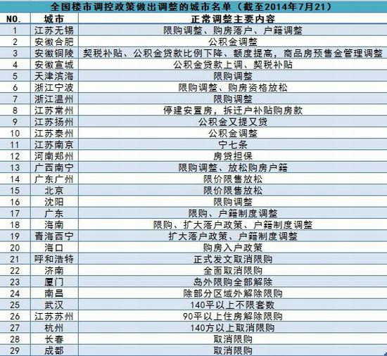 以下是今年以來對(duì)樓市調(diào)控政策作出調(diào)整的城市名單: