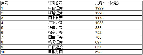 根據(jù)證券業(yè)協(xié)會的最新資料,2013年度證券公司總資產(chǎn)排名第一的券商為中信證券,總資產(chǎn)為1929.33億,而海通證券、國泰君安、廣發(fā)證券、華泰證券分別居于前五。