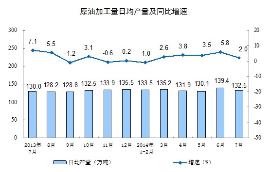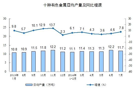 分產(chǎn)品看,7月份,多種產(chǎn)品同比增長。其中,鋼材9476萬噸,增長3.7%;水泥22297萬噸,增長3.5%;十種有色金屬363萬噸,增長7.8%;乙烯150萬噸,增長11.7%;汽車185.8萬輛,增長10.5%;轎車102.1萬輛,增長6.8%;發(fā)電量5048億千瓦時,增長3.3%;原油加工量4108萬噸,增長2.0%。
