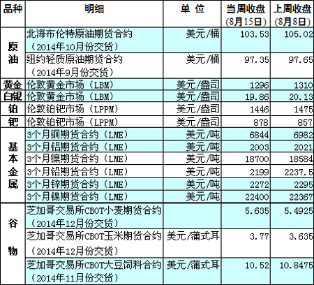 國(guó)際大宗商品期貨價(jià)格明細(xì)表[2014-8-18]