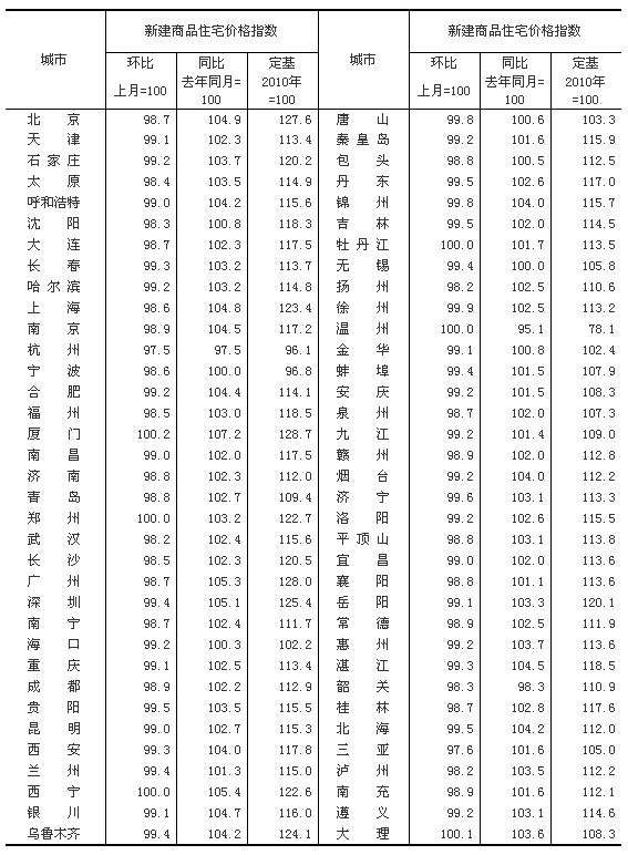 一、新建商品住宅(不含保障性住房)價(jià)格變動(dòng)情況(詳見(jiàn)附表1)