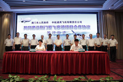 8月19日,全國(guó)首個(gè)通用航空綜合體項(xiàng)目——荊門愛(ài)飛客鎮(zhèn)合作建設(shè)在京舉行簽約儀式,中航工業(yè)通飛總經(jīng)理曲景文與荊門市市長(zhǎng)肖菊華分別代表雙方在合作協(xié)議上簽字。湖北省副省長(zhǎng)許克振、中國(guó)航空工業(yè)集團(tuán)公司(以下簡(jiǎn)稱中航工業(yè))總經(jīng)理譚瑞松、副總經(jīng)理徐占斌、吳獻(xiàn)東,荊門市市委書(shū)記萬(wàn)勇等出席簽約儀式。