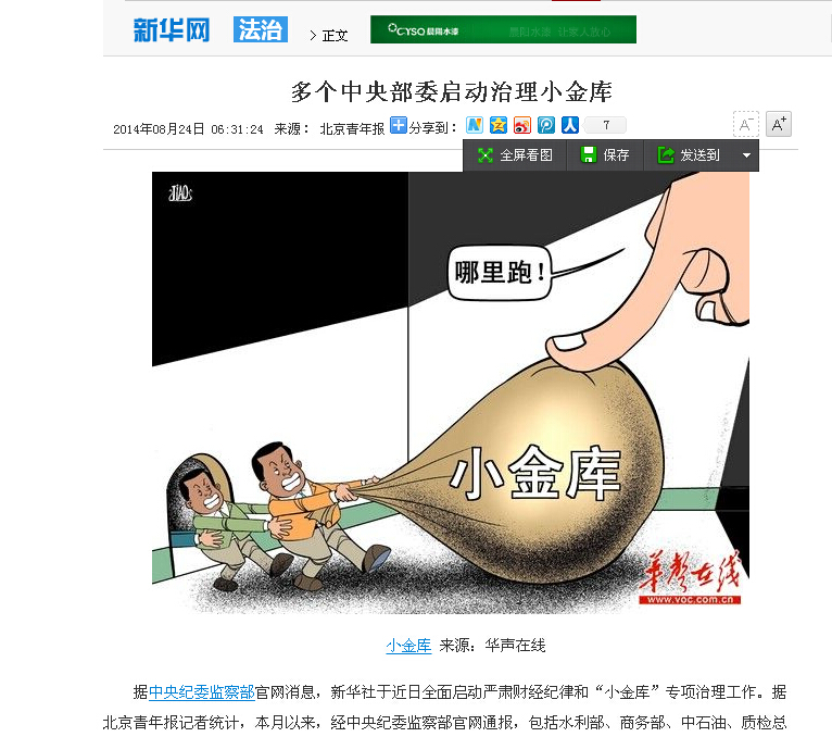 據(jù)中央紀(jì)委監(jiān)察部官網(wǎng)消息,新華社于近日全面啟動(dòng)嚴(yán)肅財(cái)經(jīng)紀(jì)律和“小金庫”專項(xiàng)治理工作。據(jù)記者統(tǒng)計(jì),本月以來,經(jīng)中央紀(jì)委監(jiān)察部官網(wǎng)通報(bào),包括水利部、商務(wù)部、中石油、質(zhì)檢總局、稅務(wù)總局、衛(wèi)計(jì)委、新華社等單位紛紛啟動(dòng)“小金庫”治理。