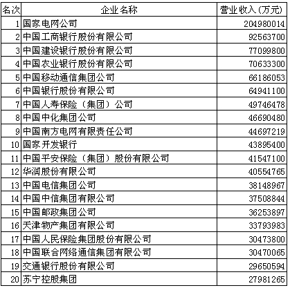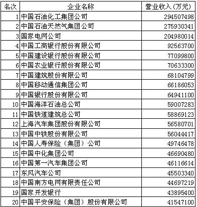 2014中國企業(yè)500強(前20)