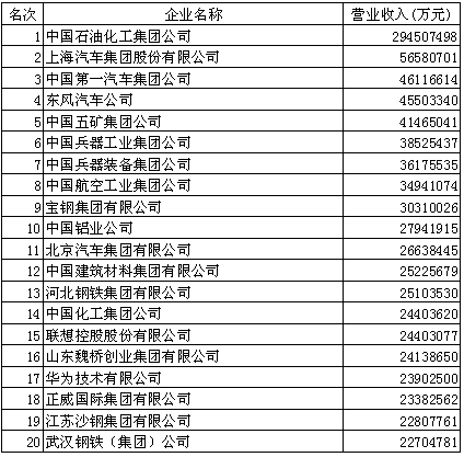 2014中國制造業(yè)企業(yè)500強(前20)