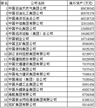 2014中國跨國企業(yè)100強名單(前20)