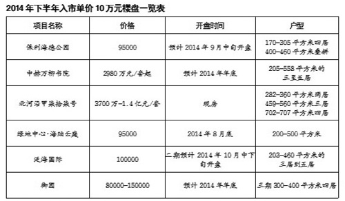 機(jī)構(gòu)統(tǒng)計(jì),2014年北京預(yù)計(jì)有7個(gè)頂級(jí)豪宅項(xiàng)目入市,數(shù)量創(chuàng)下北京近年之最。從價(jià)格來看,保利海德公園、北河沿甲柒拾柒號(hào)、廣渠金茂府、中赫萬柳書院等均價(jià)都在10萬左右;從分布區(qū)域來看,入市項(xiàng)目絕大多數(shù)都位處城市核心區(qū)域。其中,樣板間已經(jīng)開放,預(yù)計(jì)9月中旬開盤的保利海德公園位處北三環(huán)薊門橋北;預(yù)計(jì)今年年底入市的中赫萬柳書院位于西北四環(huán);自今年5月以來一直處于順銷狀態(tài)的萬科北河沿甲柒拾柒號(hào)則位處地安門。