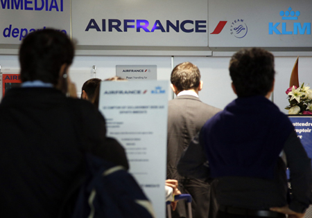 法航飛行員于15日起舉行為期一周的罷工,以抗議公司削減開支、發(fā)展廉價(jià)航空的計(jì)劃。法航在官網(wǎng)說大約有48%的航班可以在15日起飛,不過不排除還有最后變動(dòng)的可能。 圖為當(dāng)日在法國尼斯國際機(jī)場(chǎng),乘客在法航值機(jī)柜臺(tái)旁等待辦理手續(xù)。