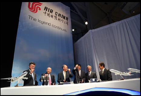 國航總裁宋志勇代表國航正式接受中國首架波音747-8