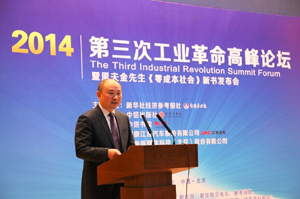 新華社副社長于紹良在致辭時指出,2012年,美國著名趨勢學家里夫金先生出版了《第三次工業(yè)革命》一書,在全球引起了熱烈反響。新華社旗下的媒體對此進行了充分的報道和宣傳!巴ㄟ^上述活動,極大地豐富了我們對第三次工業(yè)革命的認識,堅定了我們對第三次工業(yè)革命所描述的未來是一個非化石能源所支撐的世界的信心!彼硎,“里夫金先生新撰寫出版的《零成本社會》一書,進一步闡述了第三次工業(yè)革命對人類生產(chǎn)生活的深刻影響,對我們很有啟發(fā)。”
