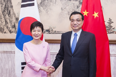 樸槿惠請(qǐng)李克強(qiáng)轉(zhuǎn)達(dá)對(duì)習(xí)近平主席的親切問(wèn)候。她表示,李克強(qiáng)總理剛才在亞歐首腦會(huì)議上發(fā)表了很好的講話,將有力促進(jìn)亞歐合作。中國(guó)為幫助西非國(guó)家抗擊埃博拉疫情作出了重要貢獻(xiàn)。中國(guó)經(jīng)濟(jì)持續(xù)快速發(fā)展有利于地區(qū)和世界的繁榮。韓方愿同中方進(jìn)一步擴(kuò)大經(jīng)貿(mào)、金融等領(lǐng)域合作,期待于今年年底前完成韓中自貿(mào)協(xié)定談判,力爭(zhēng)達(dá)成全面和高水平的自貿(mào)協(xié)定,努力實(shí)現(xiàn)2015年兩國(guó)貿(mào)易額3000億美元目標(biāo),提高兩國(guó)的國(guó)際競(jìng)爭(zhēng)力,促進(jìn)經(jīng)濟(jì)可持續(xù)增長(zhǎng)。