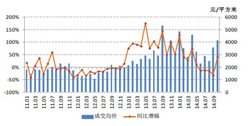 易居研究院研究員亢亞娟分析認為,10月,10大典型城市土地成交均價為4140元/平方米,環(huán)比增加15.8%,同比增加40%,環(huán)同比均出現(xiàn)較大幅度提升與出讓土地質(zhì)量較高有關。