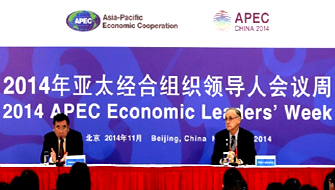 11月6日,APEC秘書處執(zhí)行主任博拉爾德博士在吹風(fēng)會(huì)上回答記者提問。當(dāng)日,“2014中國APEC關(guān)鍵問題與倡議和APEC領(lǐng)導(dǎo)人會(huì)議周”吹風(fēng)會(huì)在北京國家會(huì)議中心舉行。《APEC經(jīng)濟(jì)趨勢/貿(mào)易監(jiān)測分析報(bào)告》也在會(huì)上發(fā)布。新華社記者 畢曉洋/攝