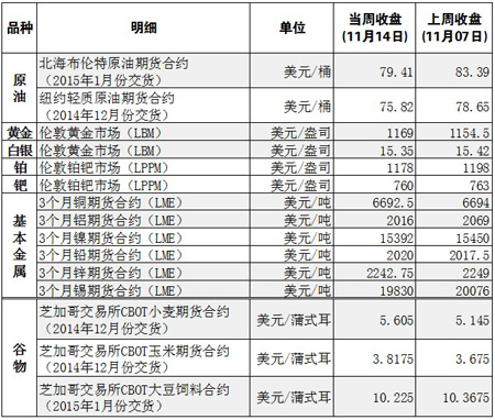 國際大宗商品期貨價(jià)格明細(xì)表[2014-11-17]
