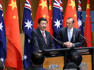 | 圖為國(guó)家主席習(xí)近平當(dāng)日在堪培拉與澳大利亞總理阿博特共同會(huì)見(jiàn)記者。 |