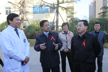 由美國(guó)夏威夷大學(xué)艾滋病研究所教授Qiguiyu,MD,PhD、CeciliaM.Shikuma一行,在河南省衛(wèi)生廳官員陪同下來(lái)到六院,專(zhuān)題進(jìn)行艾滋病救治工作的實(shí)地考察。美國(guó)專(zhuān)家由衷地贊嘆:“中國(guó)了不起,鄭州六院了不起的‘藍(lán)海艦隊(duì)’!”高度評(píng)價(jià)六院在國(guó)際傳染病領(lǐng)域的卓著貢獻(xiàn)。美國(guó)、英國(guó)等國(guó)家的專(zhuān)家學(xué)者還就如何應(yīng)對(duì)耐多藥、流動(dòng)人口和TB/HIV三大挑戰(zhàn)等難題展開(kāi)聯(lián)合攻關(guān)。