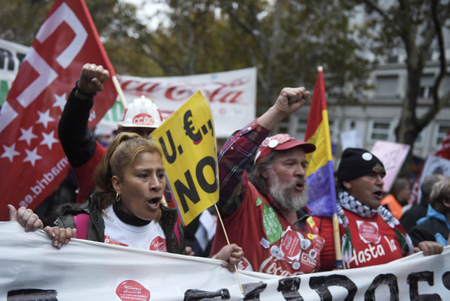 當(dāng)?shù)貢r(shí)間11月29日,西班牙多個(gè)城市的民眾聚集在首都馬德里參加“尊嚴(yán)游行”,抗議政府的財(cái)政緊縮政策。據(jù)悉,參加此次游行活動(dòng)的人數(shù)超過25萬名。