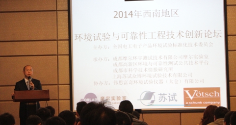 為讓西南地區(qū)廣大的電子產(chǎn)品生產(chǎn)和研發(fā)企業(yè)進(jìn)一步掌握現(xiàn)行標(biāo)準(zhǔn)的試驗(yàn)方法,了解環(huán)境與可靠性技術(shù)發(fā)展的最新趨勢及未來標(biāo)準(zhǔn)發(fā)展方向,由全國電工電子產(chǎn)品環(huán)境試驗(yàn)標(biāo)準(zhǔn)化技術(shù)委員會主辦,成都摩爾實(shí)驗(yàn)室、成都高新區(qū)環(huán)境與可靠性測試公共技術(shù)平臺、成都市科學(xué)技術(shù)情報(bào)研究所承辦,上海蘇試眾博環(huán)境試驗(yàn)技術(shù)有限公司、偉思富奇環(huán)境試驗(yàn)儀器(太倉)有限公司協(xié)辦的2014年西南地區(qū)“環(huán)境試驗(yàn)與可靠性工程技術(shù)創(chuàng)新論壇暨GJB150A培訓(xùn)會”于2014年12月4日至5日在成都康普雷斯大酒店成功舉辦。