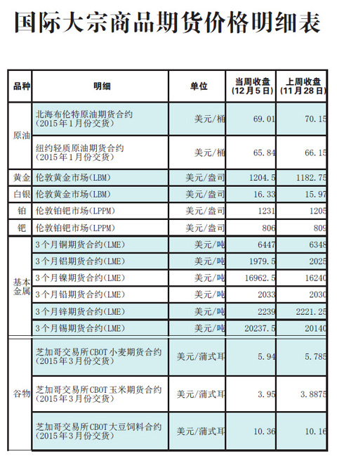 國際大宗商品期貨價格明細表[2014-12-8]