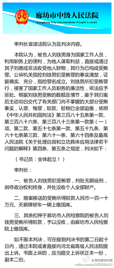 審判長在現(xiàn)場宣讀了法院經(jīng)審理另查明的事實。另查明,案發(fā)后,被告人劉鐵男主動坦白交代了辦案機關(guān)未掌握的收受南山集團、廣汽集團及張愛彬給予的錢款共計1875.3060萬元的事實,贓款、贓物已全部追繳。