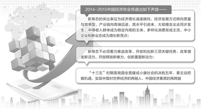 在認識新常態(tài)、適應(yīng)新常態(tài)、引領(lǐng)新常態(tài)的“大邏輯”下,中國經(jīng)濟要秉持怎樣的發(fā)展新理念?從何發(fā)掘經(jīng)濟發(fā)展新動力?如何營造經(jīng)濟發(fā)展新環(huán)境?12月21日舉行的2014-2015中國經(jīng)濟年會上,與會專家學者展開了一場腦力激蕩——