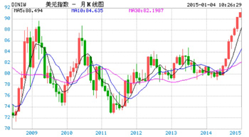 受益于美國經(jīng)濟的溫和復(fù)蘇和美聯(lián)儲退出量化寬松的預(yù)期,美元在2014年下半年的外匯市場上獨占鰲頭,美元指數(shù)逼近八年高位。相比之下,新興市場貨幣則出現(xiàn)全盤下跌的局面,美元對一些貨幣的匯率創(chuàng)下金融危機以來最高水平。隨著美國經(jīng)濟復(fù)蘇前景持續(xù)向好,美聯(lián)儲加息預(yù)期漸濃,預(yù)計2015年美元的上漲行情將繼續(xù)得到支撐,美元牛市在短期內(nèi)仍將延續(xù)。
