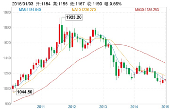 國際金價在美聯(lián)儲加息靴子落地之前料將難以見到大幅度的反彈。大多數(shù)人士對于金價2015年走勢的預(yù)期都比較悲觀。法國興業(yè)銀行認為,美國經(jīng)濟復(fù)蘇和利率上升將令金價處于下行趨勢中。高盛預(yù)計2015年12月,國際金價將跌至每盎司1050美元的水平。2014年基本金屬市場也隨著油價的暴跌而大幅下挫。原油價格下跌可能進一步拉低通脹預(yù)期,并導(dǎo)致基本金屬被大量出售。分析指出,由于油價下跌,避險情緒主宰市場,基本金屬價格短期內(nèi)仍將維持在低位,但是正在逐漸找到支撐,比如中國、歐洲和日本實施經(jīng)濟刺激措施的可能性,以及美國經(jīng)濟強勁的復(fù)蘇勢頭等。