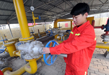 河北省文安縣燃?xì)庹{(diào)壓站職工對(duì)天然氣管道進(jìn)行維護(hù)!∮浾