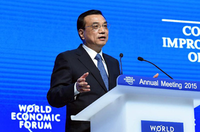 國務(wù)院總理李克強當?shù)貢r間21日下午在瑞士達沃斯出席世界經(jīng)濟論壇2015年年會全會,并發(fā)表題為《維護和平穩(wěn)定,推動結(jié)構(gòu)改革,培育發(fā)展新動能》的特別致辭。