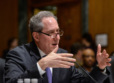 1月27日,在美國首都華盛頓,美國貿(mào)易代表邁克爾·弗羅曼就2015年美國貿(mào)易政策議程在國會作證。 當日,美國貿(mào)易代表邁克爾·弗羅曼敦促國會授予奧巴馬政府“快速道”授權(quán),以加快美國與亞太和歐盟國家的自貿(mào)談判。
