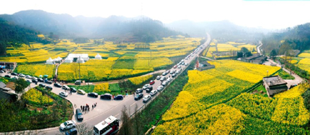 每到春天,大片大片的油菜花在被譽(yù)為“中國(guó)最美的鄉(xiāng)村公路”的重慶路沿路盛開,宛如一場(chǎng)鄉(xiāng)村盛宴。當(dāng)春風(fēng)吹過,花隨地勢(shì)流動(dòng),有如花海。每年3月初,“中國(guó)成都自駕賞花節(jié)”便在這里等你如約而至,賞花節(jié)將持續(xù)到4月中旬。這一個(gè)月中,正是春花盛放時(shí)節(jié)。